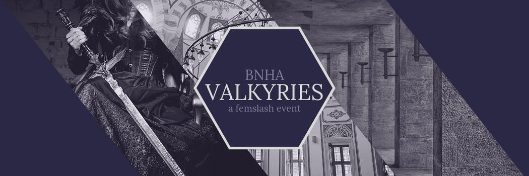 What is VALKYRIES?Valkyries is a BNHA femslash event week with dark romance elements, celebrating the strong female characters of the manga and anime Boku no Hero Academia (My Hero Academia).The prompts will be on the more mature end of the spectrum, however, both SFW and NSFW works are more than welcome as long as they are tagged accordingly.